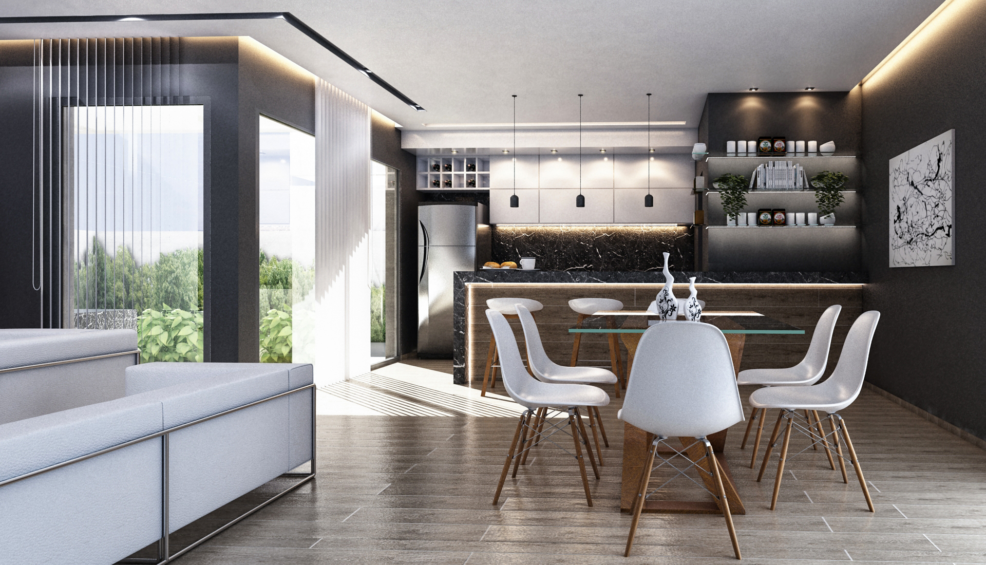 - Los dúplex se configuran como una gran residencia moderna minimalista, rompiendo con la simetría tradicional del mercado.